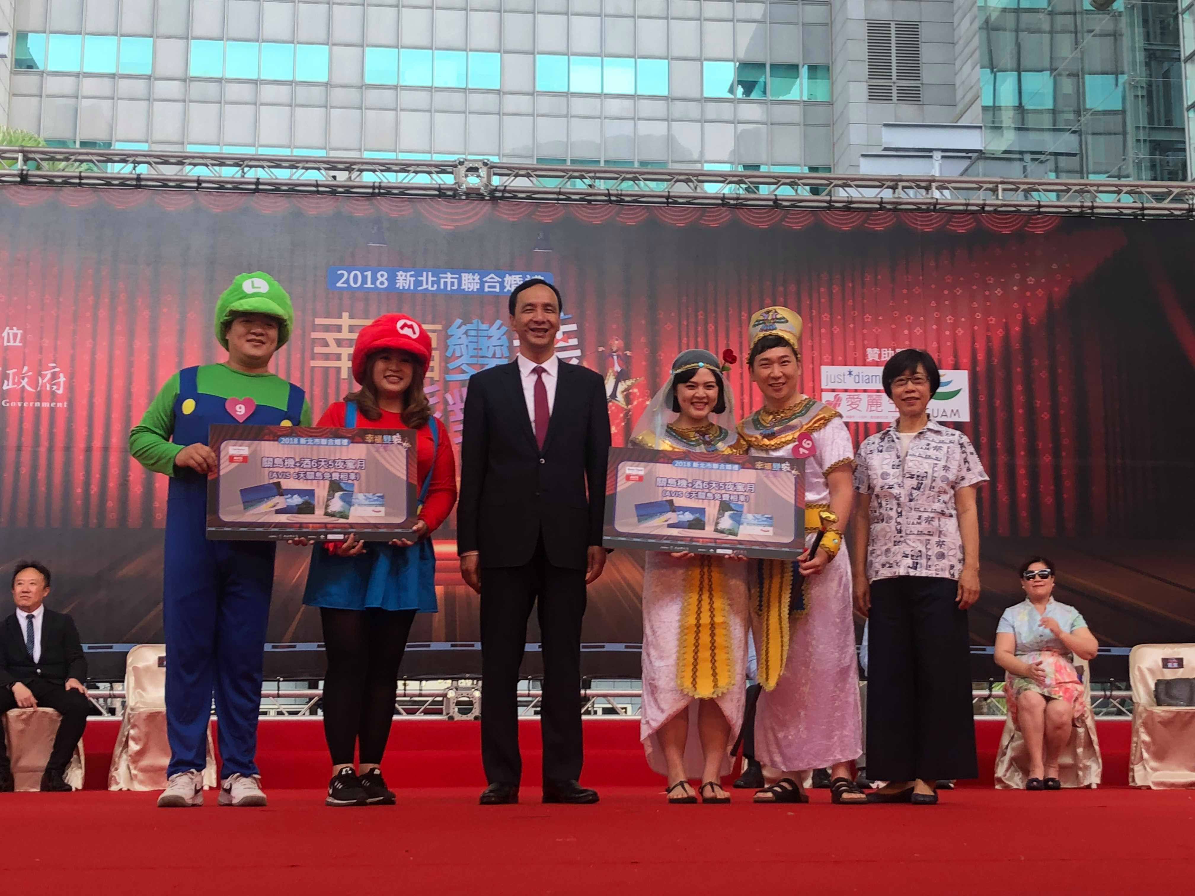 一年一度的新北市聯合婚禮於520盛大舉辦,120對新人配合變裝主題的造型精采吸睛,而關島觀光局提供的兩組蜜月之旅則是全場最屏息以待的大獎,當天關島觀光局充當神仙教母,除了贊助兩對新人共四張台北關島來回機票、二間頂級五星級飯店都喜天麗和威斯汀酒店五晚住宿以及二組AVIS關島6日免費租車外,現場再加碼贊助三對新人關島海景飯店樂天與太平洋之星五晚住宿與 AVIS雙北機場免費接送。